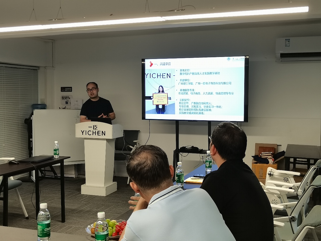 基地企业导师王骞经理作了基地建设汇报,王经理从基地共建单位、服务专业、功能定位等几个方面开始,并介绍基地建设过程,从校企合同、制度保障、安全保障等进行介绍,并汇总了过去两个学年学生在基地参与实训的全过程数据,结合学生成绩、教师团队取得成绩等方面做汇报。整个汇报过程分成五个方面,从建设基地概况、基地建设管理、基地教学实施、基地教学成果、存在与下一步工作,较全面地展现基地目前建设情况。