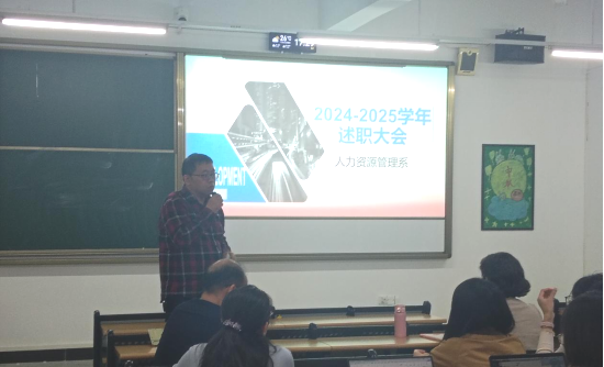 为全面总结教学科研工作成效,压实立德树人根本任务,11月6日下午,工商管理学院人力资源管理系 2024-2025 学年教师述职大会在1栋教学楼802教室室召开。大会由系主任周旭主持会议,工商管理学院副院长刘琰莅临指导,人力资源管理系全体专任教师参加本次述职。