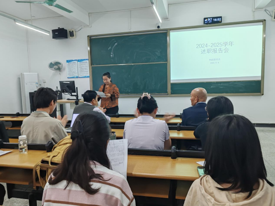 (王祺敏)为全面总结过去一学年的工作成效,促进教师间的经验交流与共同提升,2025年11月6日下午,工商管理学院物流管理系在1-815隆重举行了年度教师述职报告会。物流管理系全体教师齐聚一堂,依次登台,就各自在师德表现、取得主要成绩、存在问题及今后工作设想等方面进行了全面梳理与汇报。学院院长李培祥出席了会议。