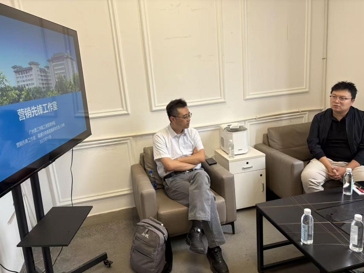 (黄庆瑶)为加强工作室间的经验共享与合作联动,深化实践教学与专业建设融合,11月3日,广州理工学院人文与教育学院书记陈武耕、副院长张志国及创作先锋工作室负责老师桑琳博一同前往工商管理学院营销先锋工作室开展参观交流活动。营销先锋工作室负责人及核心成员全程陪同接待,双方围绕工作室运营管理、直播实践教学及创意营销合作等议题展开深入探讨。