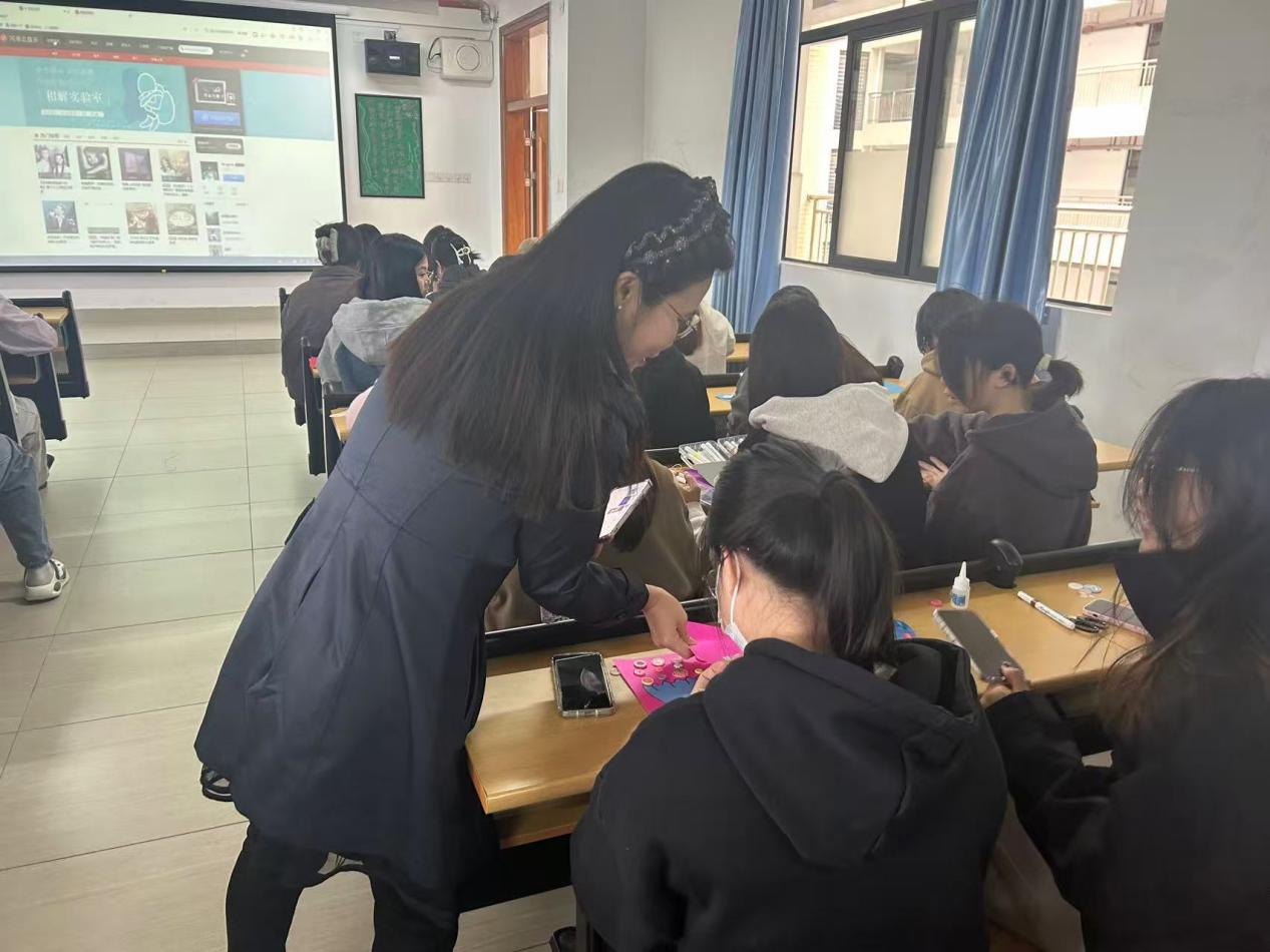活动正式开始前,指导老师廖婉余为到场同学简要介绍了本次活动的初衷与流程。她提到,小小的纽扣不仅是日常衣物的一部分,更能成为承载情感、发挥无限创意的媒介,希望同学们能暂时放下烦恼,全身心投入到这场指尖的艺术创作中。