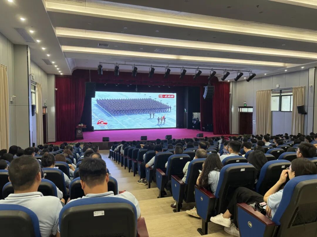 天安门广场上,45个方队梯队威武行进,会议室屏幕前,教职工目光炽热、掌声不断。两个时空在此刻交汇于同一种情感——对伟大祖国的深切热爱与自豪。此次阅兵是党和国家政治生活中的一件大事,也是中国全面推进中国式现代化进入新征程的首次阅兵,对于高校师生来说,这更是一堂生动的爱国主义教育课。