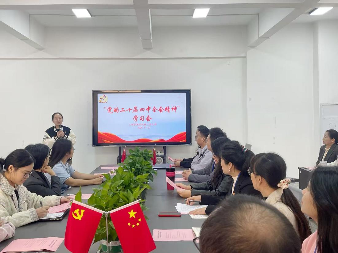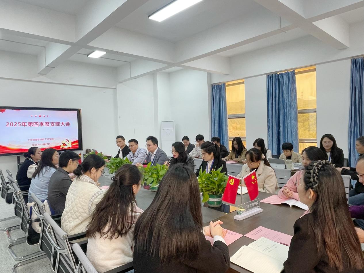 11月27日下午,工商管理学院教工党支部在1-813会议室召开了支部大会,深入学习贯彻党的二十届四中全会精神。会议由李玉权同志主持,工商管理学院教工党支部全体党员参会。