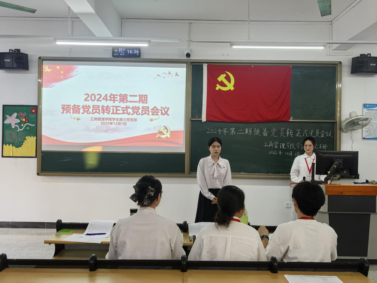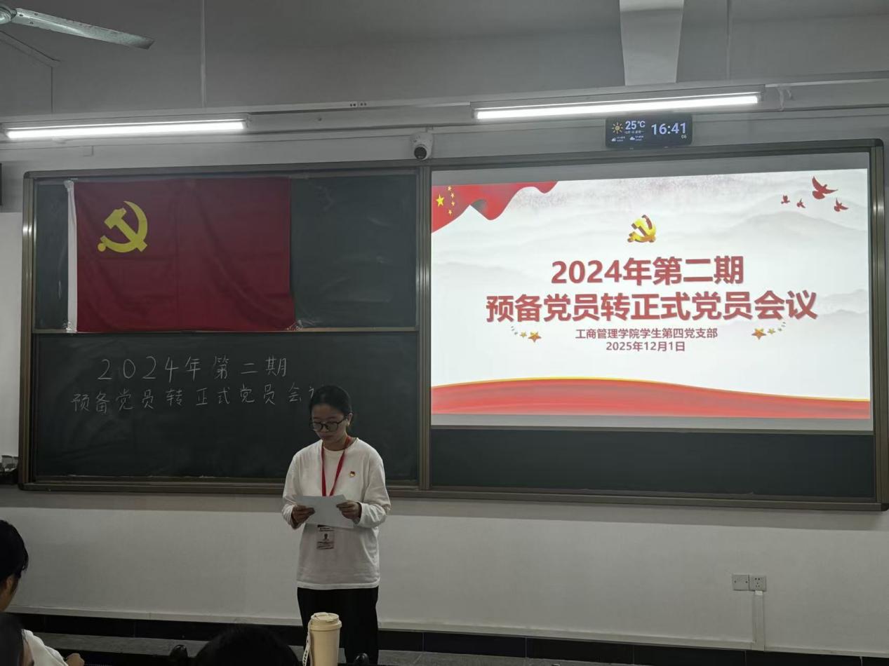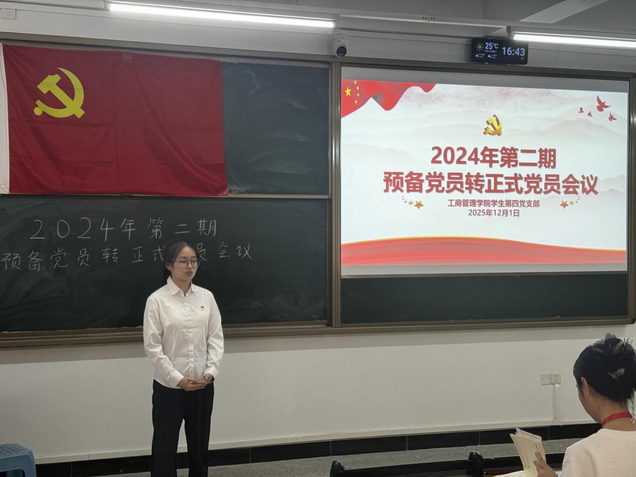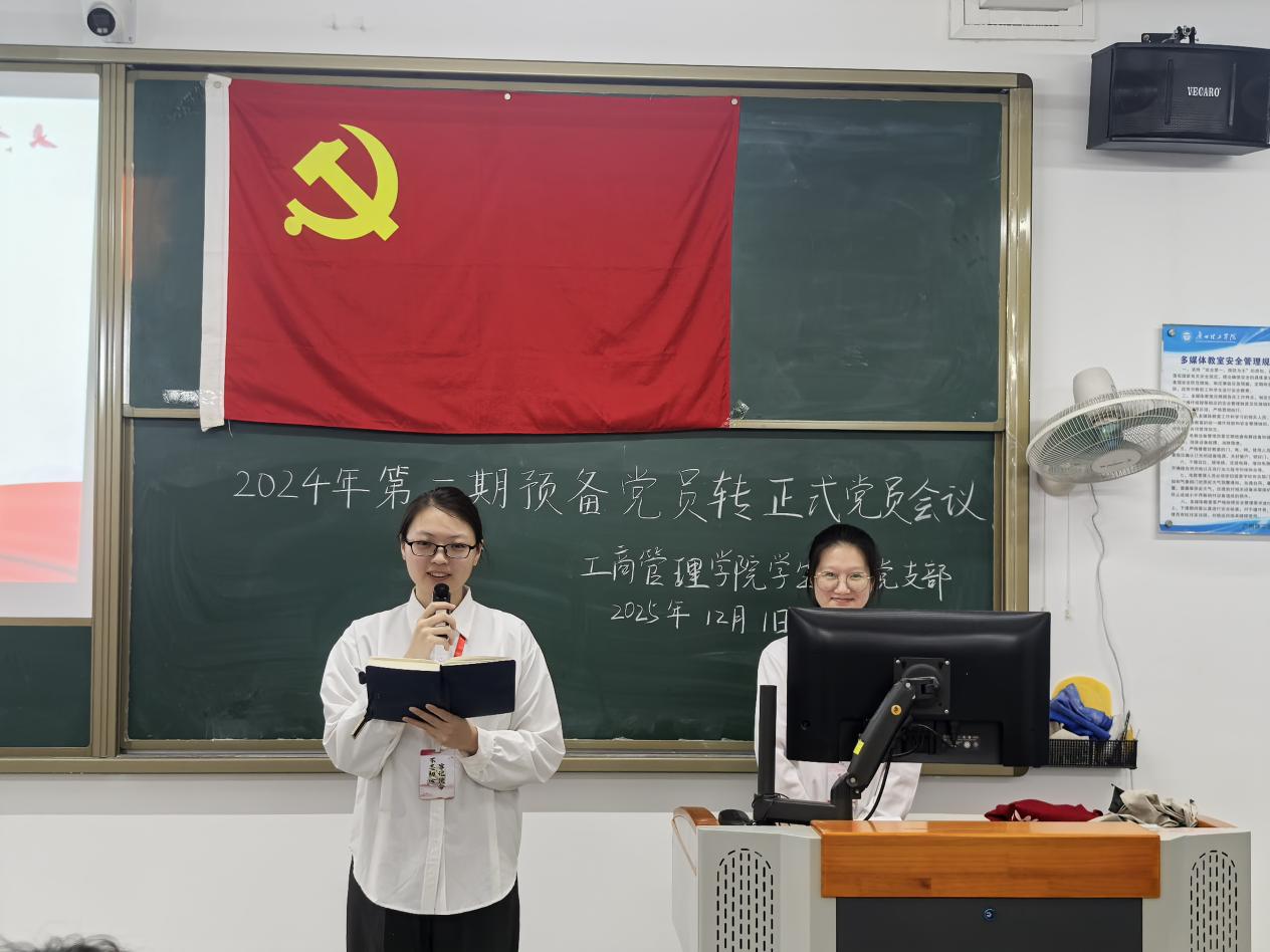 12月1日,工商管理学院学生党支部分别于1栋1001、1002、1003、1004召开预备党员转正会议。此次会议分别由陈佳仪、温惠婷、黄婉琪、赖文倩同志主持。