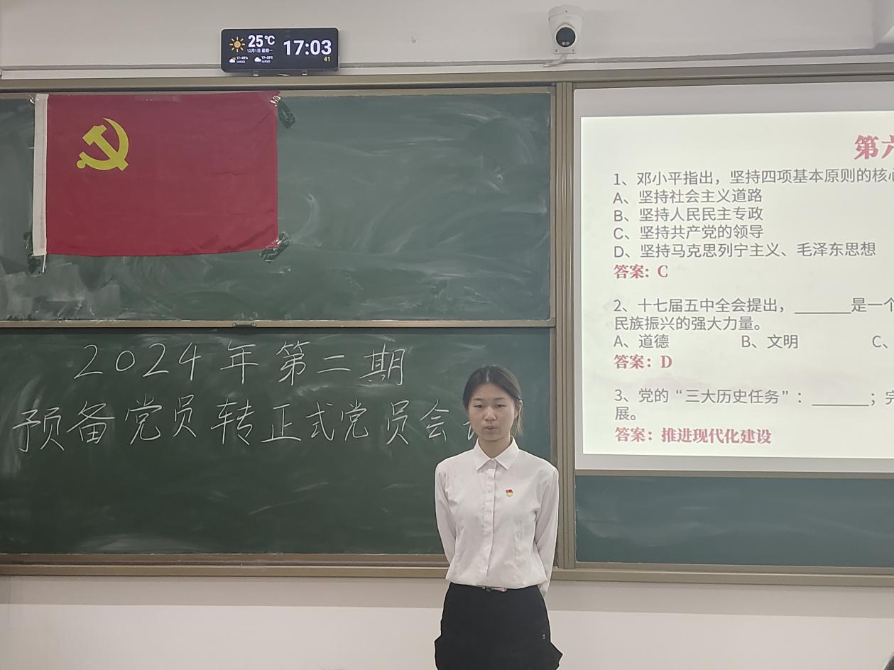 随后,各支部预备党员依次汇报其在预备期间的综合表现。他们表示,考察期间始终以党员标准严格要求自己,通过多元的学习形式夯实党史理论基础,主动参与党内各项活动,在履职尽责中锻炼过硬本领,以实际行动践行入党初心,同时在会上正式向党组织递交转正申请。
