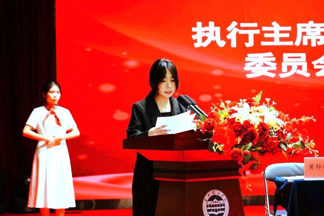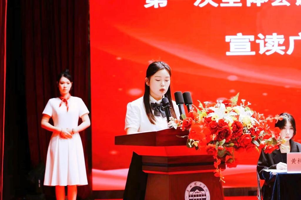 广州理工学院学生会执行主席蔡旻珊为我们宣读校学生会《关于同意召开工商管理学院第六次学生代表大会的批复》。