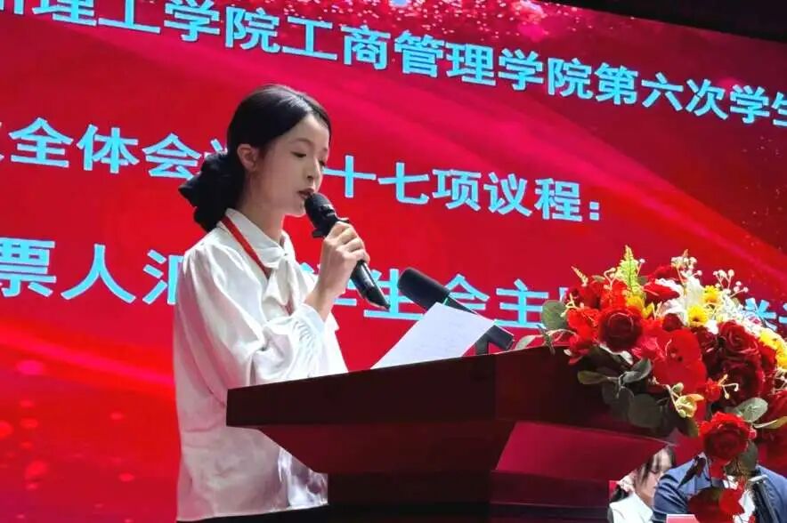 工商管理学院第六次学生代表大会提案委员会组长温灏晖作提案工作报告。