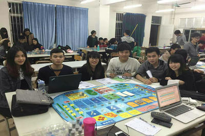 4月15日,实验班电子盘ERP商战在沙盘实验室展开!这次竞争尤为激烈!全班共分11个小组,其中由金弘带领的D组一路过关斩将!承接了各大市场的订单!稳坐龙头!最后也顺理成章地拿了第一名!