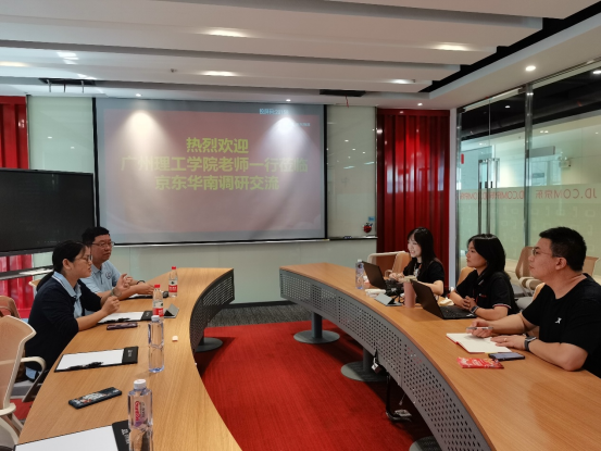9月10日,教研团队教师到达黄埔区京东华南中心,京东校企合作马经理、赵经理、李经理接待教研团队一行,双方在11楼会议开展洽谈。在洽谈中,马经理对我院对于京东的支持表示感谢,在2025届的毕业生中,学生参加京东实践教学项目之后,我院共计有20位优秀毕业生正式入职京东,分别就职京东集团各个岗位,工作成效相当不错。校招部李经理表示,接下来京东校招希望优先锁定工商管理学院的2026届优秀毕业生,尽快来学院开展校招宣讲,让更多优秀同学能有机会加入京东。赵经理表示在现有实践教学合作基础上,希望校企进一步精诚合作,共建校企一体化育人平台,建立常态化的实践教学,将相关课程纳入到学校教学计划中,大四表现优秀者可直接签订就业协议,实现“实习-就业”无缝衔接。肖老师表示感谢京东的鼎力支持,现场推动落实了校招宣讲,共建育人平台,打通校园到职场通路的事宜。