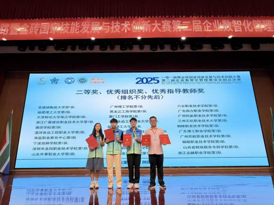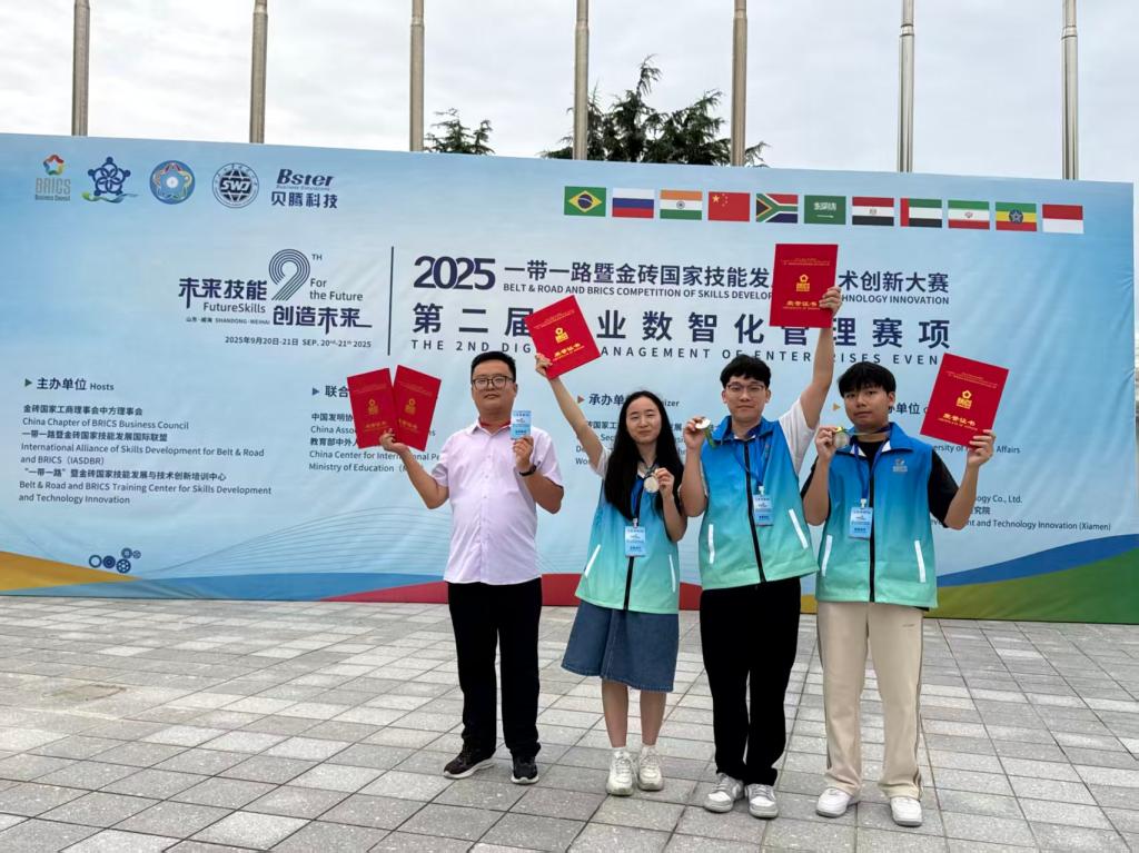2025一带一路暨金砖国家技能发展与技术创新大赛之第二届企业数智化管理赛项全国总决赛定于2025年9月20-22日在山东省威海市山东外事职业大学举办。广州理工学院由工商管理学院学子胡丽美、尹乔烽、陈健诚组成的广理砺锋剑队,在苗增老师的指导下,获得了全国总决赛二等奖(银奖)。