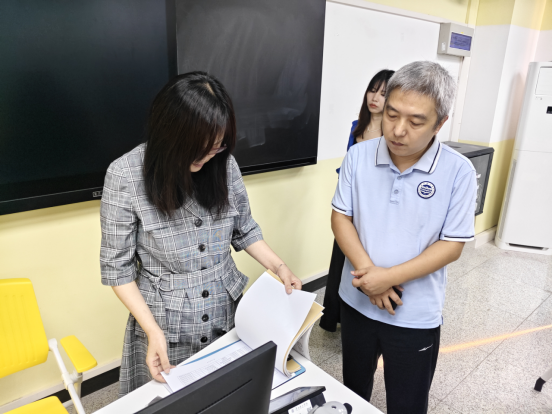 随后,马郁主任查看了学院1-704等实验室,对课表、记录本、资产统计等情况进行细致检查,并要求学院需做好帐卡物地一致及按编号管理等工作,保障实验室管理规范有序。