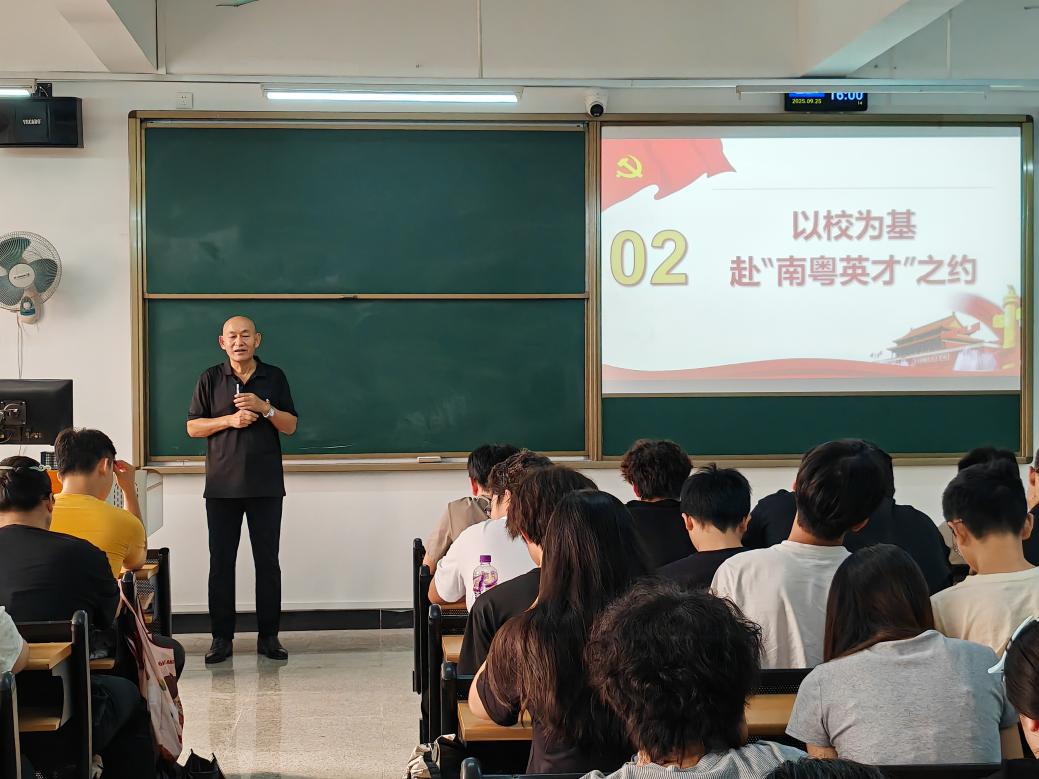 课堂上,院长李培祥以抗战胜利80周年为引,着眼于粤港澳大湾区人才需求,为同学们提供了深刻的解读与专业指引。他深入剖析了工商管理领域的前沿动态和发展趋势,结合企业案例——粤企海外仓布局、京东智慧物流等,让同学们对所学专业有了更为清晰的认知。同时,李培祥院长强调实践能力的重要性,鼓励同学们积极参与各类实践活动,提升自身综合素质。