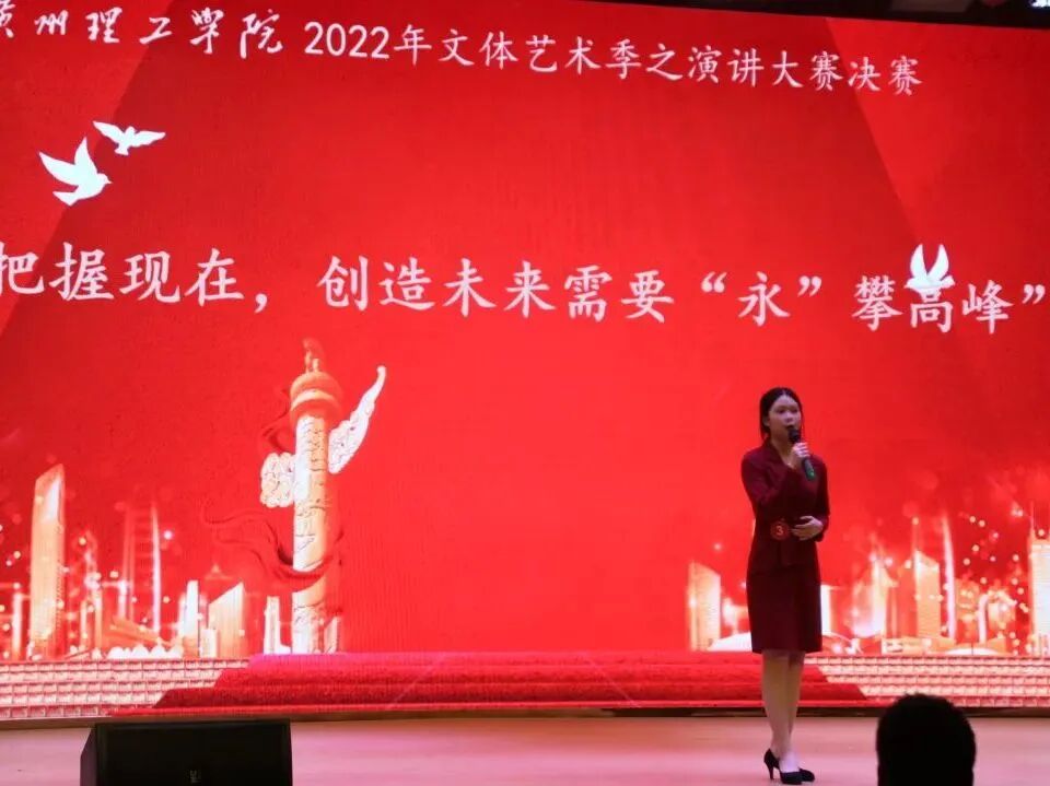 选手按照赛前抽签顺序依次上台演讲,根据自己准备的PPT进行主题演讲,每人限时4-6分钟。演讲内容由评委现场打分(100分制)。