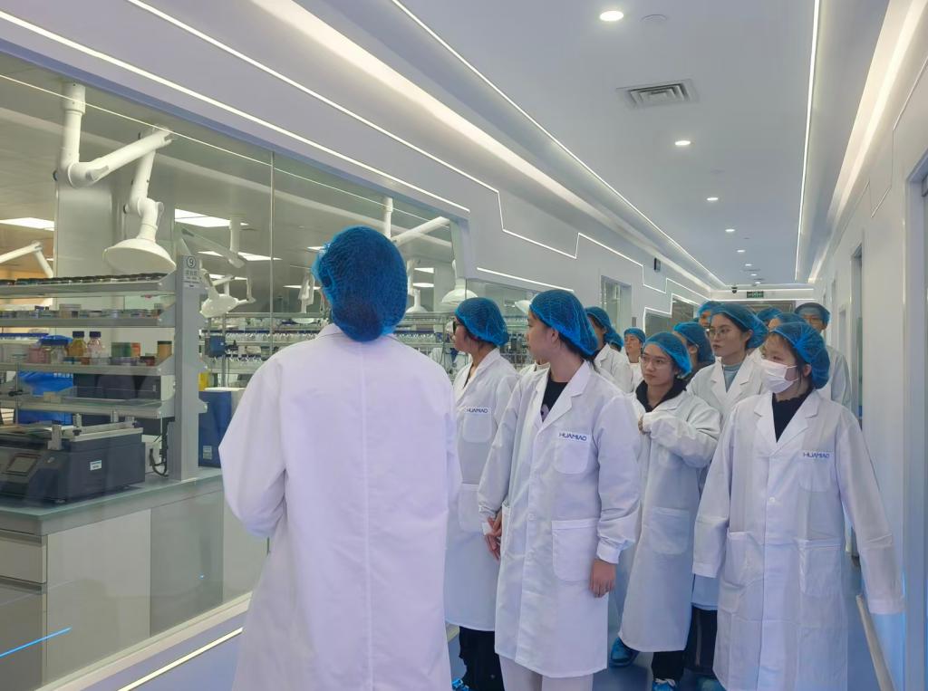 师生首站抵达华锦园,公司负责人携团队热情接待。活动伊始,对方代表用一支激光笔“点亮”了公司的成长曲线,详细介绍其发展历程、未来规划等,展现了在行业内的发展优势。同学们边听边记,手机相册里“库存”瞬间爆满。午后,华淼检测的实验室开启“静音模式”。分组轮换中,学生穿上一次性鞋套,零距离观察GC-MS、HPLC等大型设备运转,工程师现场演示“一滴精油的72小时安全之旅”。在业务办公区,一张张“检测进度甘特图”让同学们第一次直观感受“数据也能排队”。“课堂提问”搬到企业会议室。华淼检测蒋总用“三张表”拆解企业运营,吴总则抛出“美妆赛道的下一个风口”话题,现场同学围绕“纯净美妆”“AI个性化”频频追问,气氛一度“超时”。
