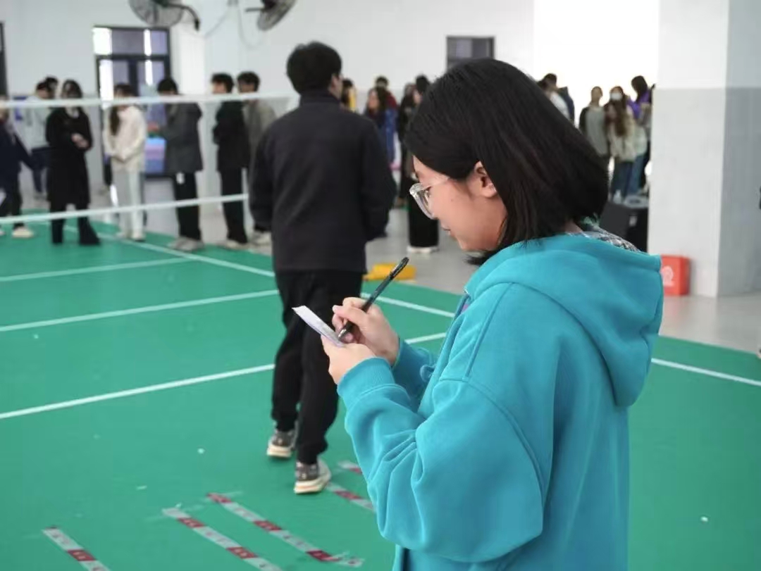 比赛现场秩序井然,氛围热烈。工作人员提前完成场地布置、距离标注、物资清点等筹备工作,候场区检录、比赛区裁判、计分统计、安全保障等岗位分工明确,确保赛事高效推进。参赛选手们屏气凝神、精准瞄准,每一次投掷都引来现场阵阵喝彩;场外师生热情助威,为选手们加油鼓劲,充分展现了
