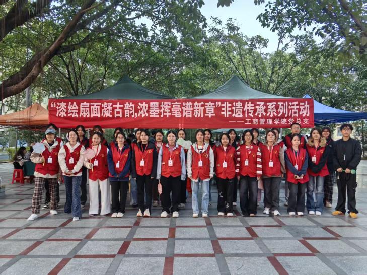 11月20日,工商管理学院党总支于7栋综合楼前小广场成功举办“漆绘扇面凝古韵,浓墨挥毫谱新章”非遗传承系列活动。本次活动以漆绘扇面创作与书法实践体验为核心,让师生在亲手实践中感受传统技艺的魅力,厚植文化自信,推动非遗文化在校园扎根生长,丰富了师生课余文化生活。