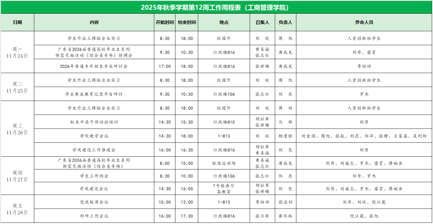 2025年秋季学期第12周工作周程表(工商管理学院)(1).xlsx