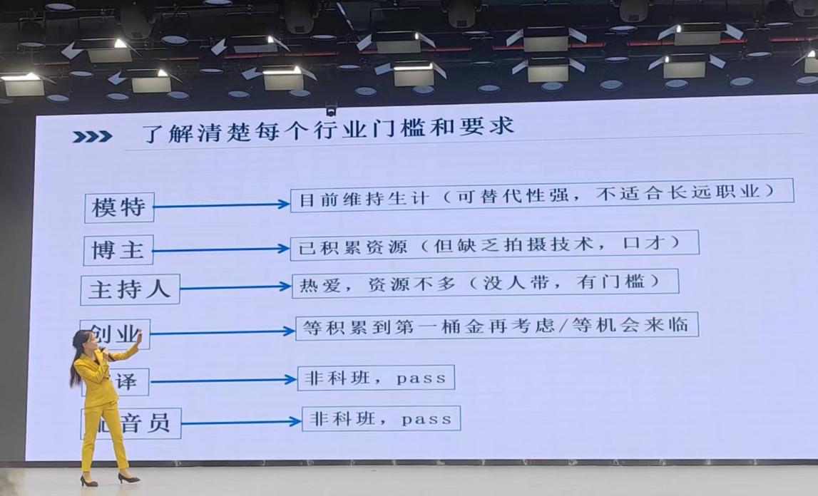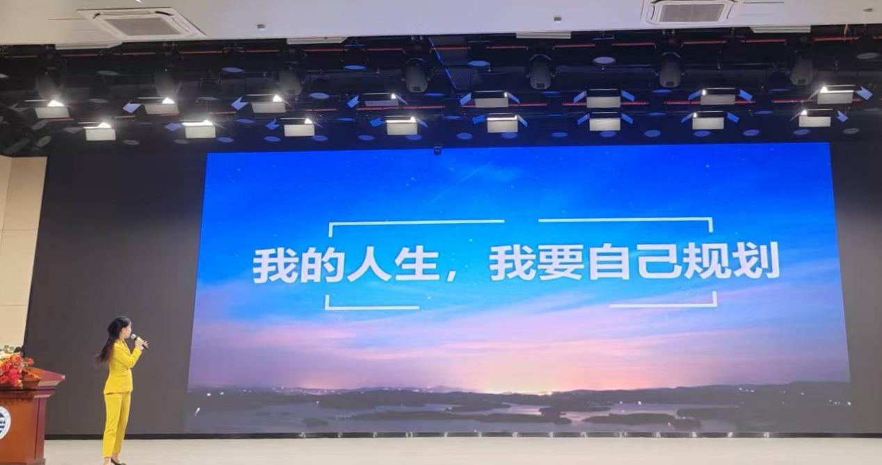 在自我分析环节,毕晓琳指出自身性格偏外向,热爱舞台与美业,并建议同学们结合兴趣与特长选择职业方向,多观察、多尝试、不怕失败。她以“相信‘相信的力量’”激励在场学子,鼓励大家主动规划人生,勇敢追逐目标,拒绝随波逐流。