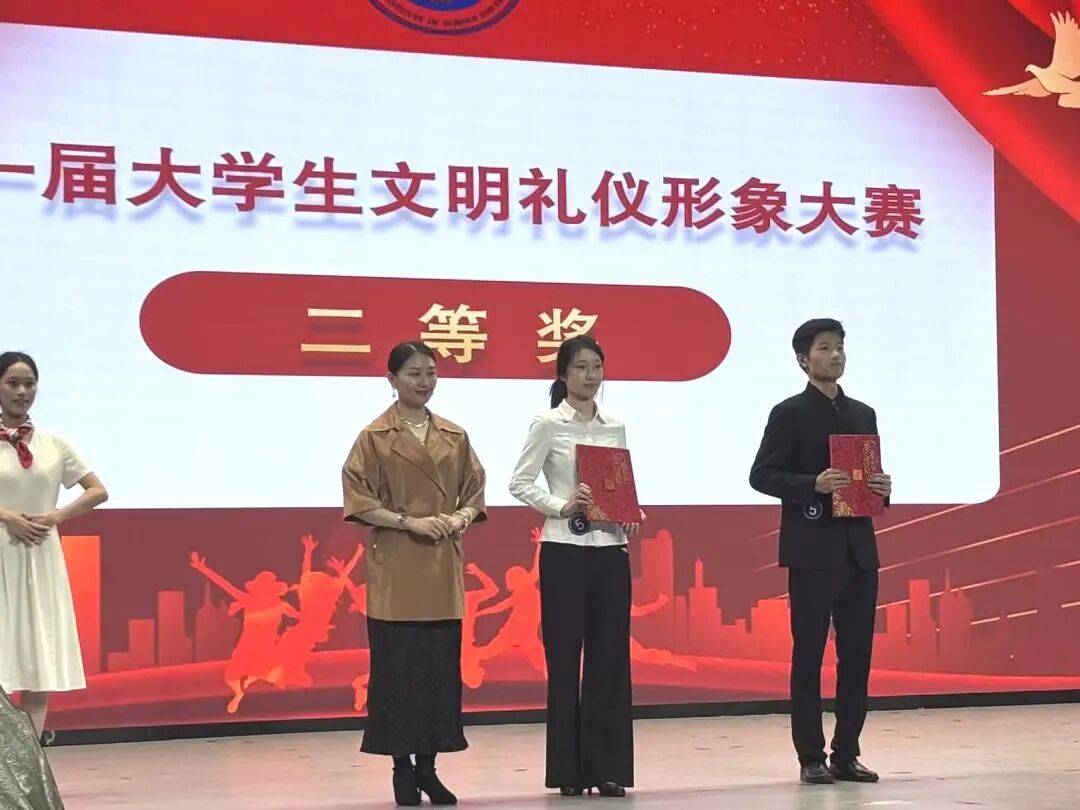 经过多轮激烈角逐与层层严苛比拼,我院“礼韵风华”代表队在全校礼仪大赛中脱颖而出,最终载誉而归,斩获校级二等奖殊荣。同时,队员们在礼仪相关评选中各有斩获,23营销2班(z)湛杰同学荣获“礼仪传播之星”,24人资2班刘星同学荣获“礼仪形象大使”。