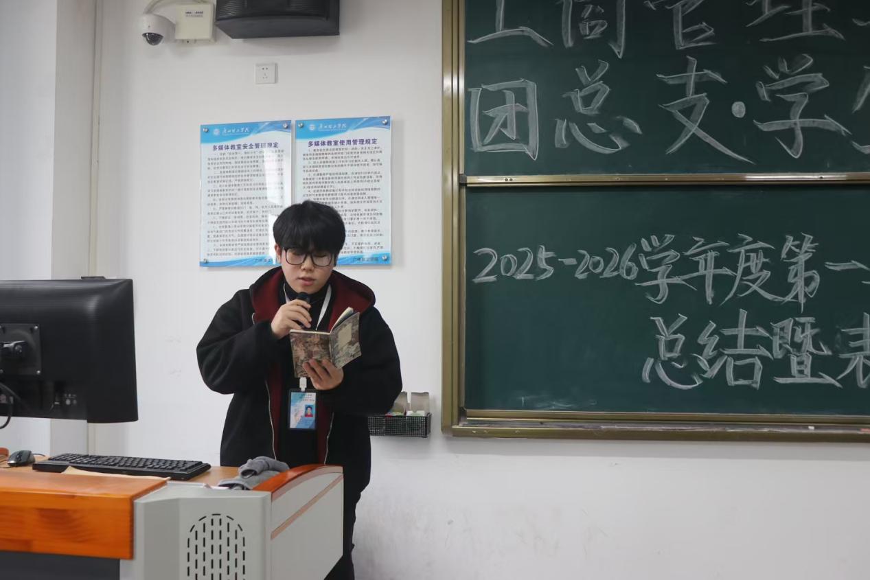 12月25日,工商管理学院团总支·学生会于13-402教室召开2025-2026年度第一学期总结暨表彰大会。本次大会由学生会秘书处副部长胡玖思主持,出席会议的嘉宾有工商管理学院学生会执行主席江琳潇、郑振宇。