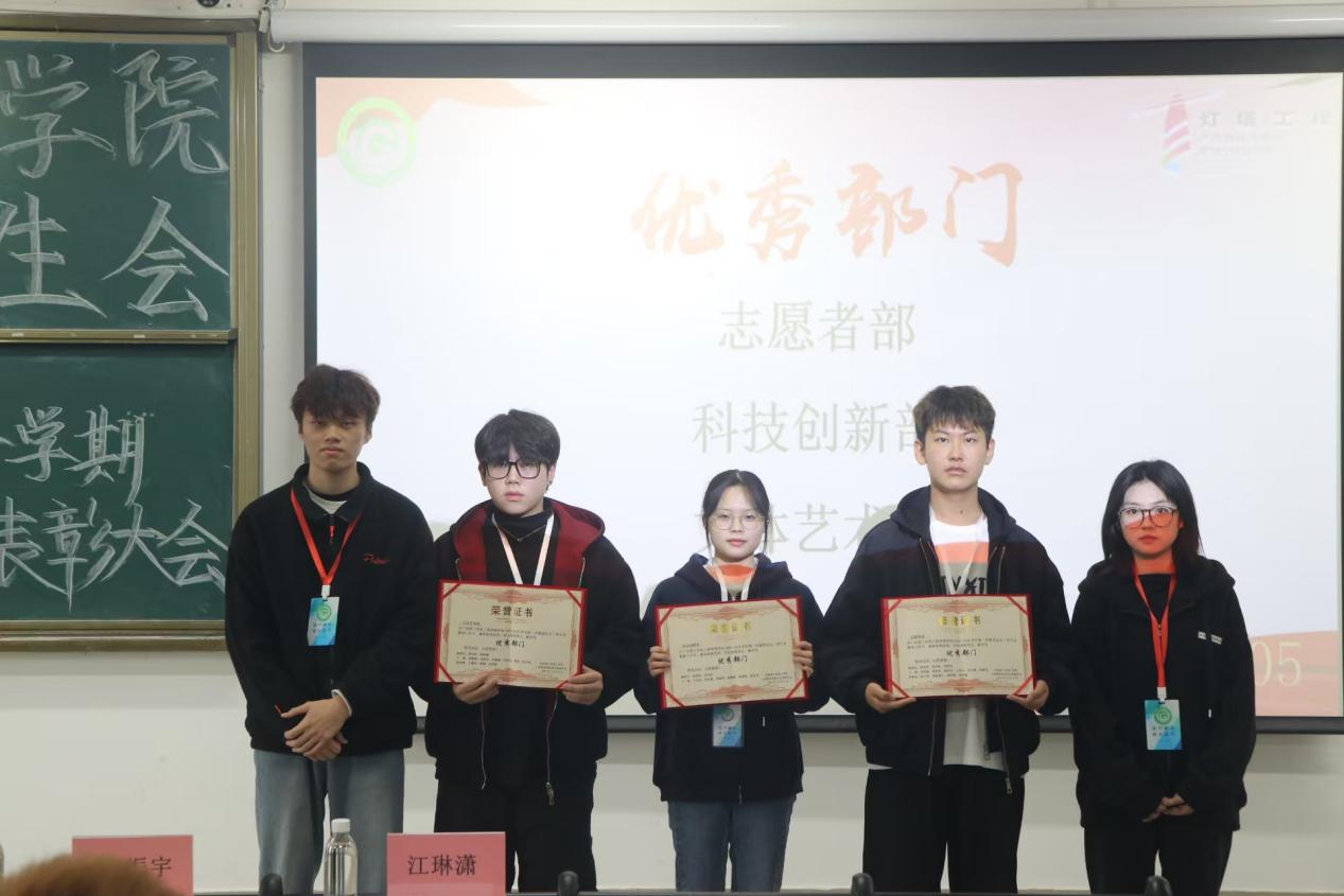 学生会科技创新部副部长陈晓彤代表部门对本学期工作进行总结汇报。本学期科技创新部聚焦创新实践与赛事组织,成功举办多项旨在激发学生创新思维与团队协作能力的活动,同时积极配合院内大型活动开展,为“挑战杯”等学术竞赛提供有力支持。未来,部门将着力优化内部管理与服务流程,积极搭建更优质的科技创新平台,为同学们提供更全面的支持。