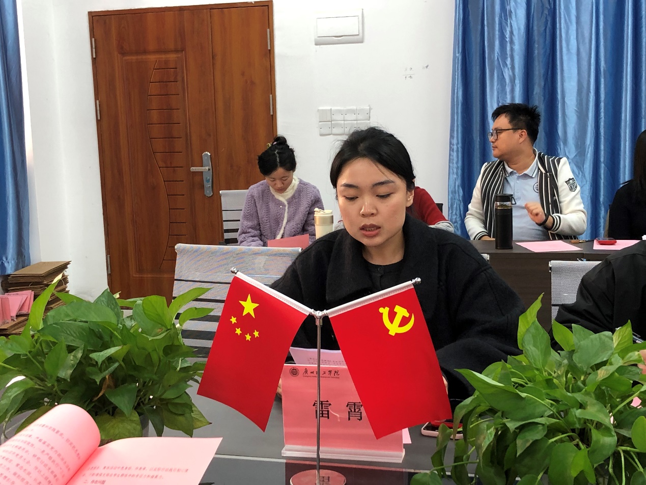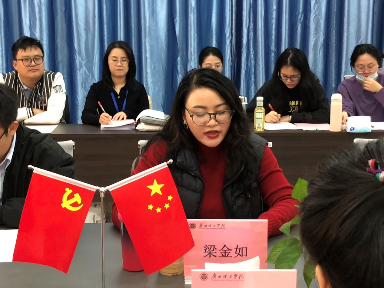 随后,教工党支部书记梁金如及学生第一至第四党支部书记李经亚、廖婉余、雷霄、罗杰依次述职。各支部书记紧扣党建工作责任制要求,结合支部实际全面汇报年度工作:教工党支部以“党建+教学+科研+社会服务”为路径,获批广东省第五批新时代高校党建工作样板支部,与广州市政协文史中心共建思政教育实践基地,相关活动获中华网、南方日报等主流媒体报道;学生党支部锚定立德树人根本任务,严格党员发展流程,创新开展红色教育、志愿服务、“三下乡”等实践活动,全年累计发展党员、培养积极分子数百名,在党建与思想教育工作考核中表现突出,学院整体排名位列二级学院第一。述职过程中,各支部书记也坦诚剖析了工作不足,如理论学习形式创新性不足、党建与业务融合深度不够、党员教育管理针对性有待加强等,并针对问题明确了整改方向。