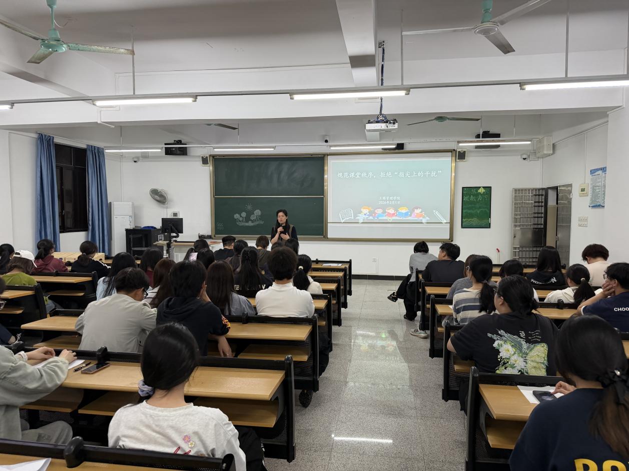 针对这一问题,刘丹书记明确提出三点要求:一是严格落实课堂手机收纳管理制度,课前统一存放手机,做到“入室即静、入座即学”;二是提高课堂“三率”,即到课率、抬头率、前排就座率,以积极的精神面貌投入每一堂课;三是学生干部、党员、入党积极分子要发挥表率作用,带头遵守课堂纪律,主动维护课堂秩序。