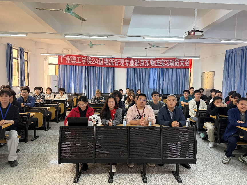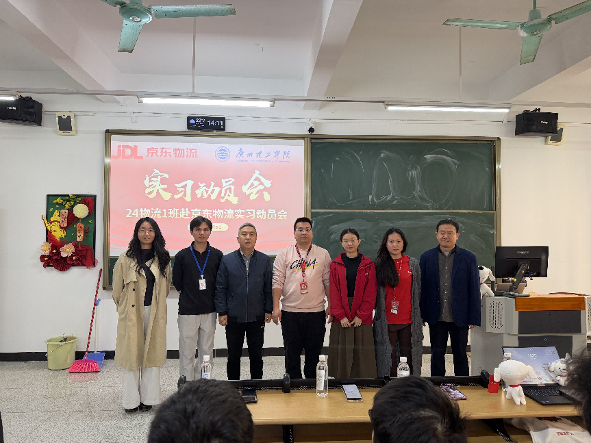 (供稿:熊志华)为深化校企合作,推动物流专业人才培养与行业实践深度融合,帮助学生提前适应职场环境、提升专业实操能力,2026年3月5日,工商管理学院在教学楼1-816教室隆重召开24级物流管理专业学生赴京东物流实习动员会。京东物流广州北区人力资源总监任家通、校企合作负责人陈晓燕、人才交付新锐之星桂婷,工商管理学院副院长倪江崴、新商科实训中心主任秦金中,物流管理系教师熊志华、王祺敏出席本次会议,24物流1班全体同学参加会议。