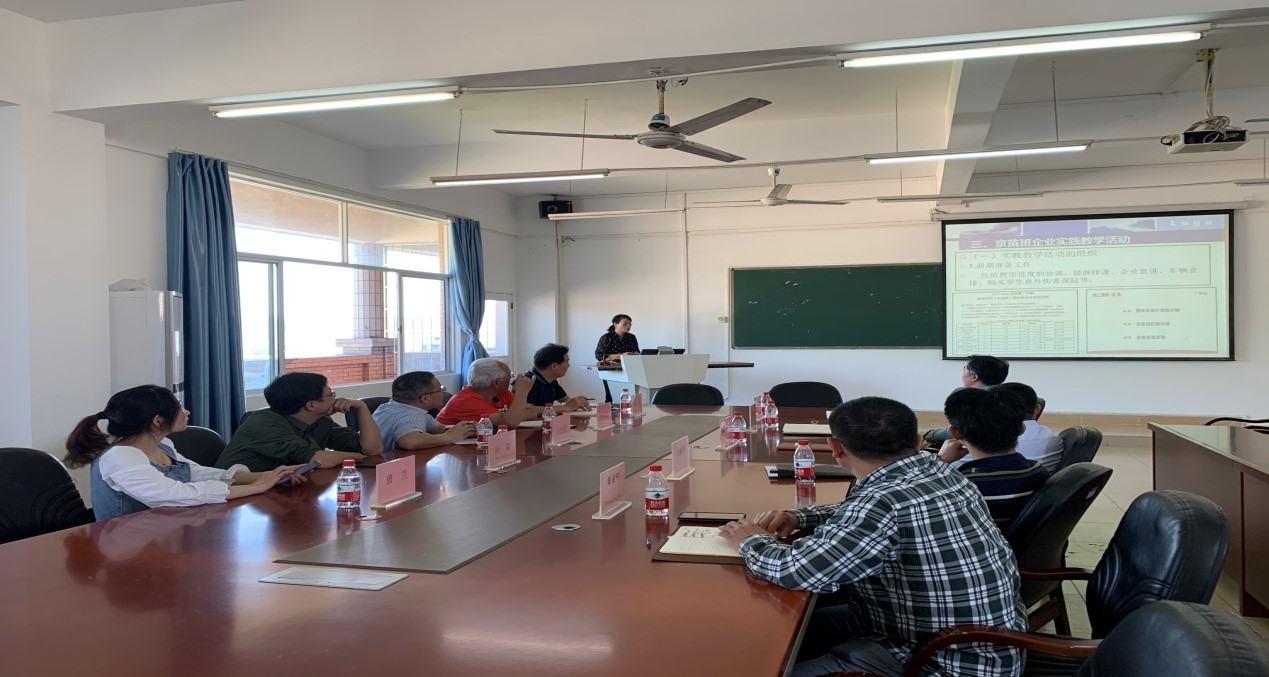 本次交流的重点是研讨工商管理学院与京东华南区域分公司合作的“京苗班”的经验,首先由我院胡劲副院长介绍了“基于京苗班的产学研实践教学模式”。胡劲副院长从京苗班的组建、人才培养方案的修订、实践教学活动的组织开展、基于京苗班的教科研成果等方面进行了详细地介绍。