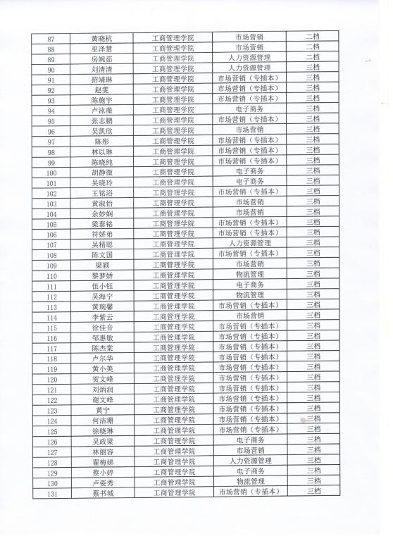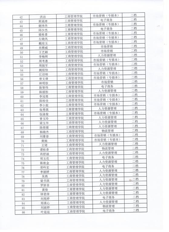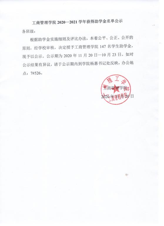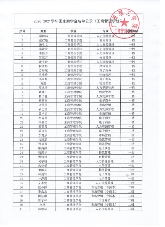 工商管理学院2020-2021学年获得助学金名单公示