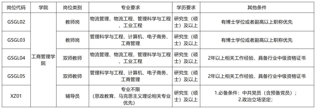 2. 专任教师、双师教师岗位以及辅导员:(具体专业及要求如下图显示)