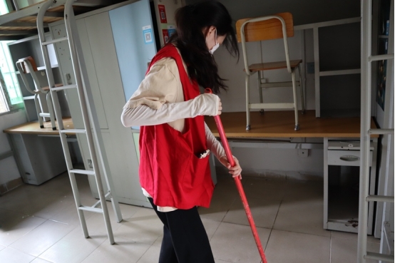 来到新生宿舍后,志愿者们立即开始有条有理地检查和清洁工作。他们逐一排查宿舍硬件设施,全面检查,及时汇总问题保修。他们扫地拖地,认真清洁,细致入微。每位同学都干劲十足,积极卖力,充分发挥学生党员、学生志愿者的服务精神,全心全意保障新生们拥有温馨的入学氛围和良好舒适的住宿环境。