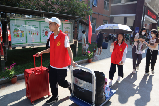我院志愿者帮助新生搬运行李(鄢璐摄)