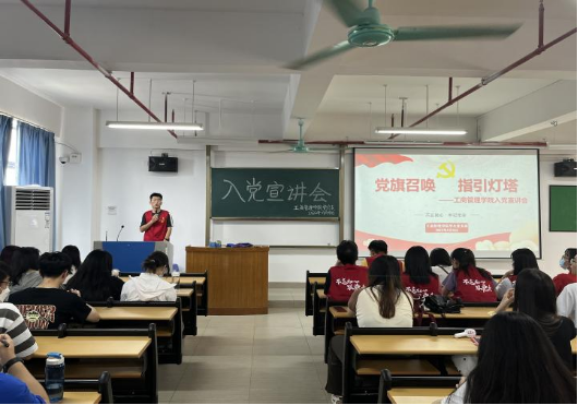 (叶凯欣 蓝晶晶)9月8日下午,工商管理学院学生党支部于13-501、13-502教室召开入党宣讲会,本次会议由陈童同志与仵允秋同志主讲。