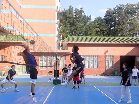 中场休息后开始第二局,对方选手变换战术,我院选手积极应对、调整站位。每一位选手各司其职、灵活应变。为了给队伍争取得分的机会,双方选手不断地调整自己的战略战术,一个个精彩的拦网、扣球夺人眼球。最终,在双方不断的较量下,我院选手积极配合、团结进取,以25:19的战绩拿下第二局胜利,本场比赛告一段落。