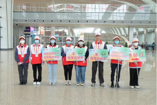 在志愿者活动开始前,高铁站工作人员对于志愿者们进行一次简短的上岗培训。高铁站工作人员将志愿者们分布在各个重要的位置上,分别在大堂服务中心、自助售票区、地铁站台换乘点,地铁进站口、出站口提供周到、细致的服务;大堂的广州理工志愿者们负责信息咨询服务;自助售票区的志愿者协助不熟悉操作流程的乘客购票及答疑,为他们节省时间;进、出站口的志愿者负责维持现场秩序,助力乘客有序安检及进出车站;地铁站台的志愿者们协助工作人员进行乘客通道指引、换乘指引,温馨提醒乘客乘车时间,并服务好每一个有需求的乘客。