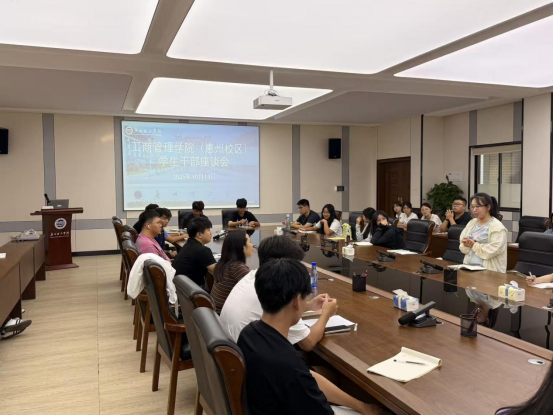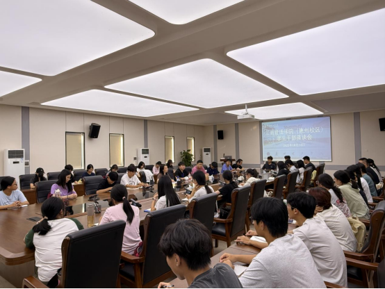 为深入了解 2025 级新生学习生活需求,切实增强对学生的关怀服务,进一步畅通师生沟通渠道,10月14日下午,我院在行政楼 320 会议厅召开 2025 级学生干部座谈会。学院党总书记杨惠从广州校区前往惠州校区主持会议,辅导员黄大锋老师出席会议,全体2025级学生干部参加会议。