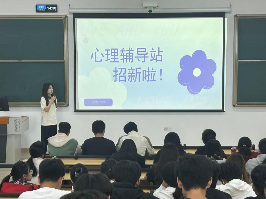 (梁培欣)金秋送爽,丹桂飘香。工商管理学院心理辅导站于2025年10月23日下午在惠州校区教学楼308举行了本次秋季招新工作。此次招新吸引了众多对心理学抱有热情、乐于助人的同学踊跃报名,经过初步筛选和面试,一批充满活力与爱心的新成员成功加入,为心理辅导站注入了新鲜血液,开启了守护学院心理健康的新篇章。