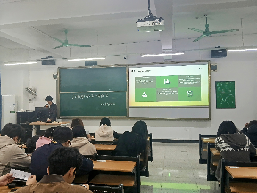 在校园文明与健康安全方面,班会着重强调宿舍用电安全、禁烟控烟、卫生清洁及流感防控等具体事项,引导学生自觉遵守行为规范,共同营造文明、健康、有序的学习生活环境。