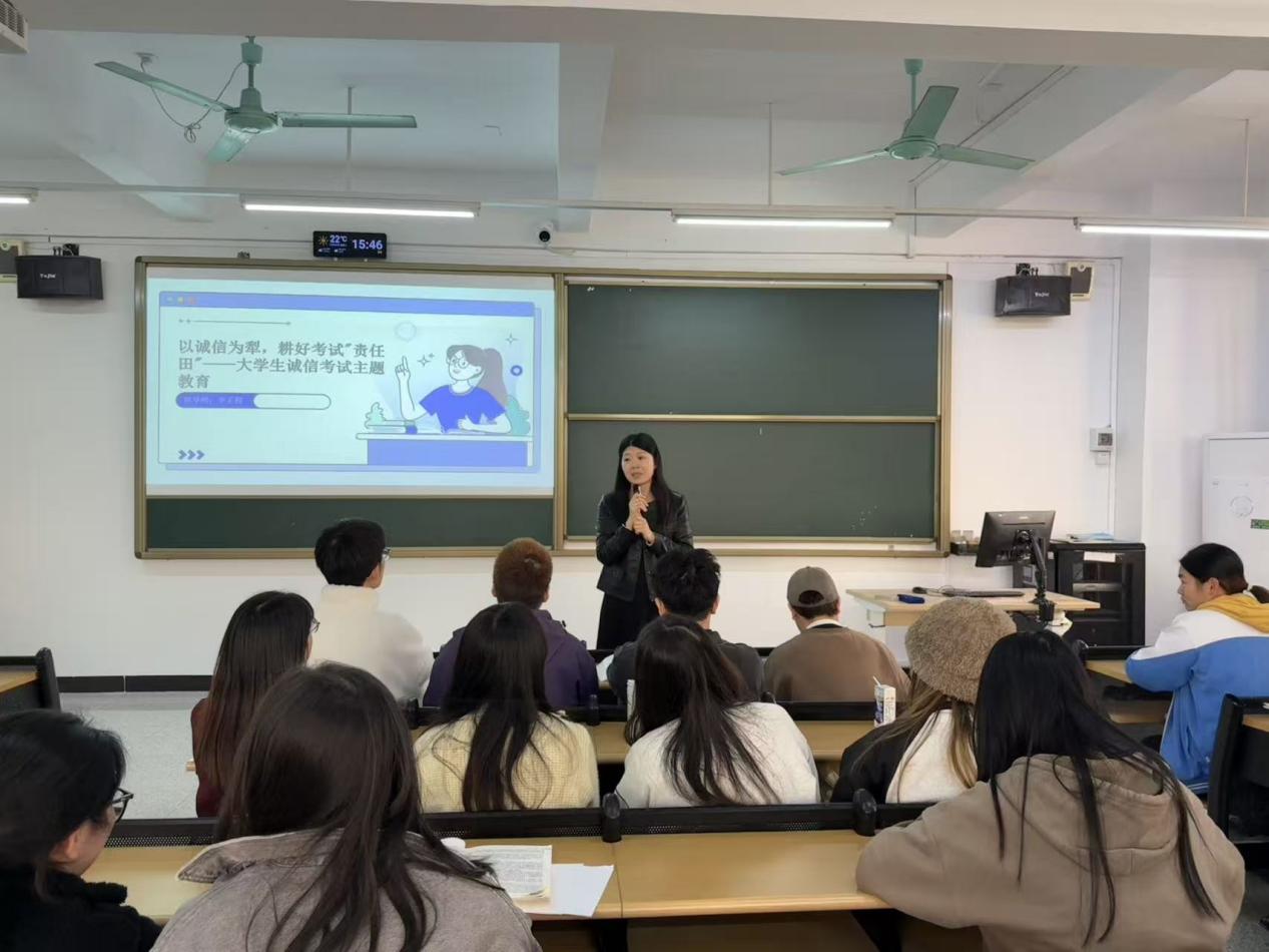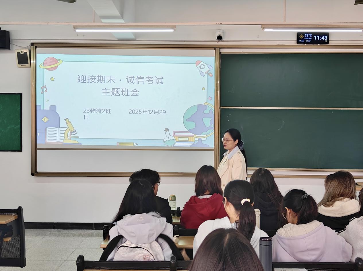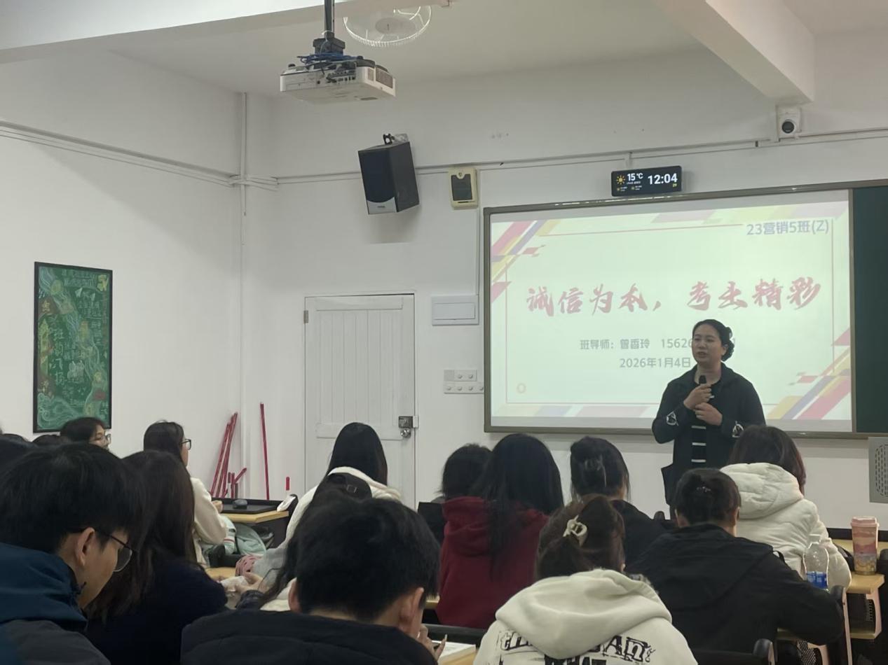 为进一步加强学风建设,引导学生树立正确的考试观念,增强诚信应考意识,营造公平公正、求真务实的考试氛围,在期末考试来临之际,工商管理学院与2025年12月29日至2026年1月4日期间,在各班级在班导师的组织下,陆续召开“诚信考试”主题班会。