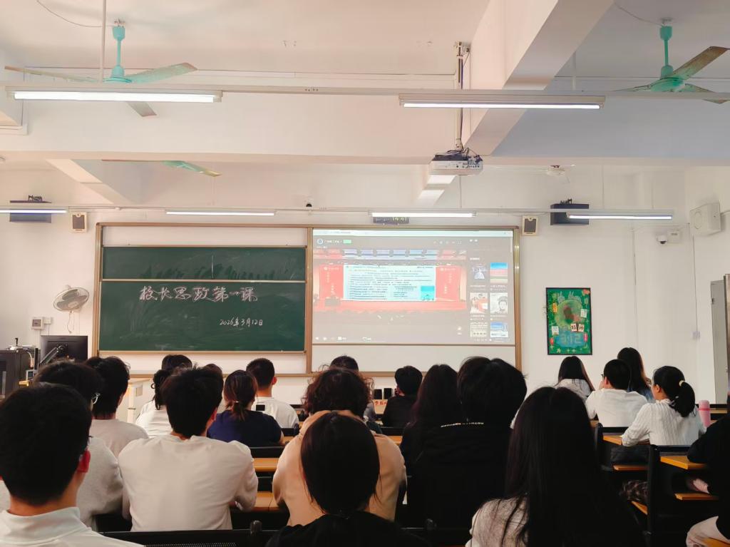 为深入贯彻落实立德树人根本任务,充分发挥思政课铸魂育人主渠道作用,引导广大学子坚定理想信念、勇担时代使命,3月12日,工商管理学院组织全院师生通过线上直播方式,在各教室集中收看了校长主讲的“思政第一课”。学院党委副书记刘丹、全体辅导员与学生们一同在教室观看学习。