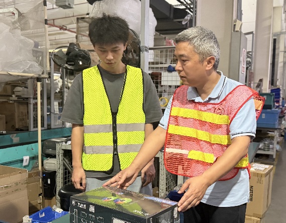 老师们在基地负责人陈晓燕的陪同下,实地考察了学生实习的工作环境,详细了解了学生们的岗位职责及生活保障情况。倪江崴副院长对京东实践教学基地为学生提供的规范管理和细致安排表示感谢,并希望校企双方持续深化合作,共同为学生的成长成才搭建更坚实的平台。