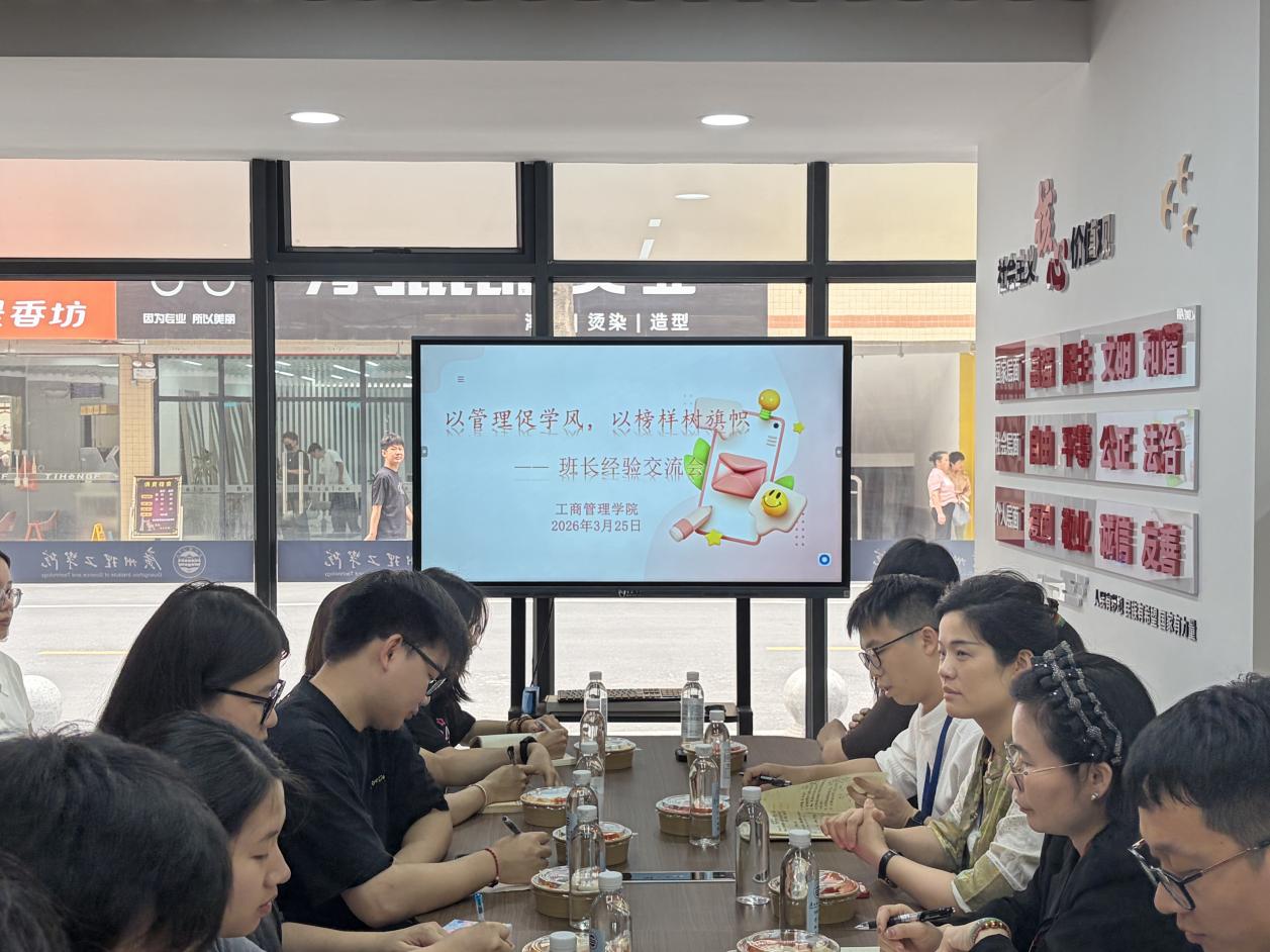 为进一步加强学风建设,夯实班级管理基础,工商管理学院于2026年3月26日在第一社区组织召开班长会议。学院党总支副书记刘丹、全体辅导员及各班级班长参加会议,会议由罗杰老师主持。